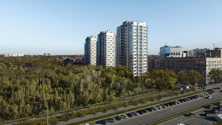 We are located in the residential complex “OLYMP” - a monolithic frame 25-storey building not far from the metro station "Naukova"