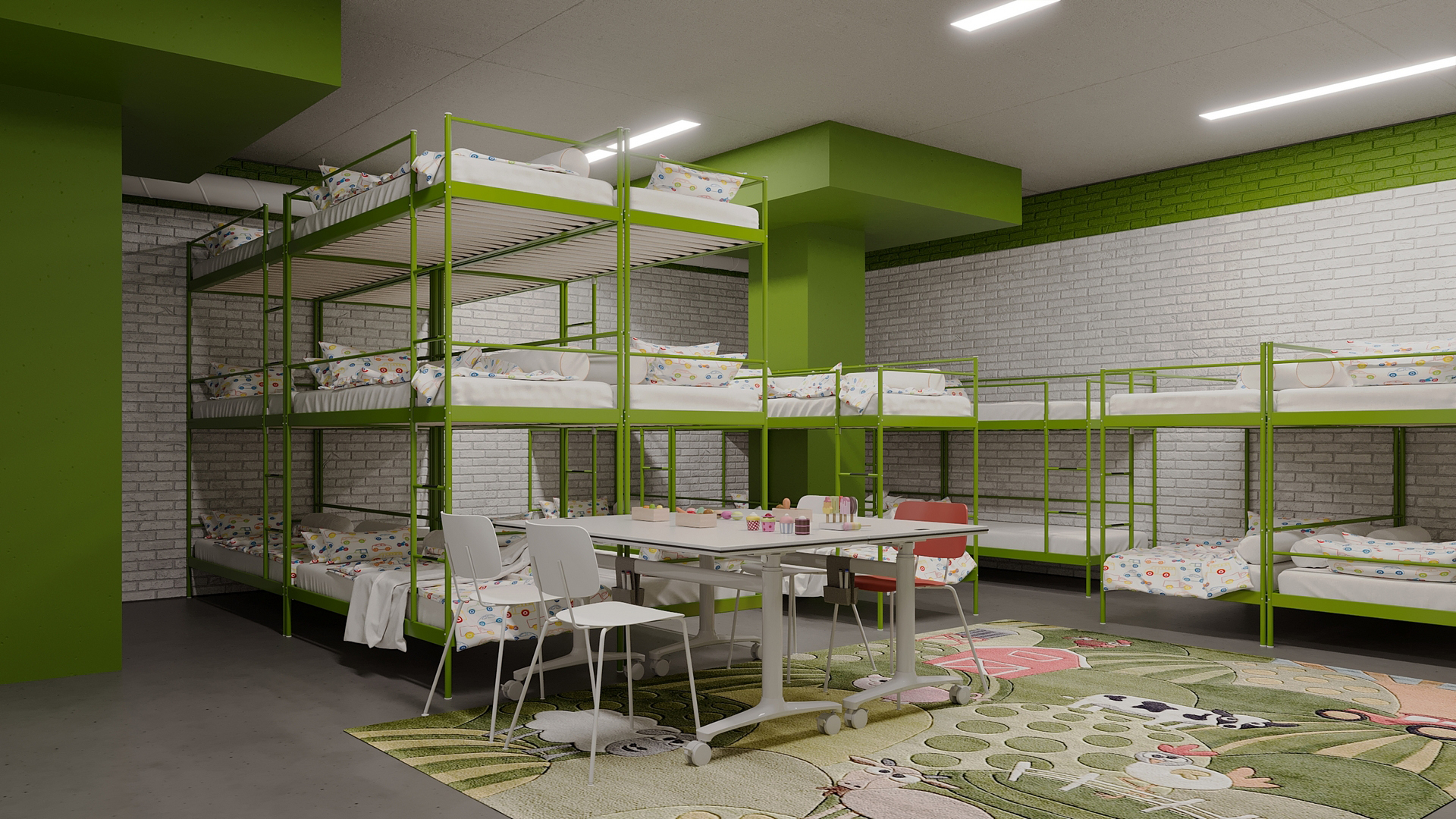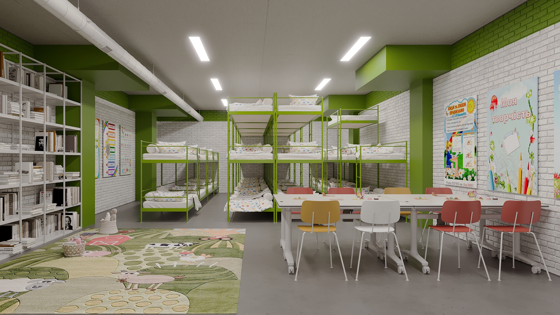 El refugio de un centro educativo, además de su función protectora directa, es un espacio en el que se respira un ambiente de seguridad, tranquilidad y confort que ayuda a reducir el nivel de estrés psicológico de todos los que se encuentran allí durante un ataque aéreo.