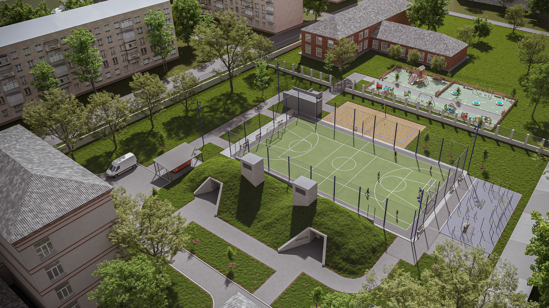 Проєкт вирішує задачу створення не лише сучасного освітнього простору, а й забезпечує вихованців надійним захистом завдяки продуманій підземній частині.